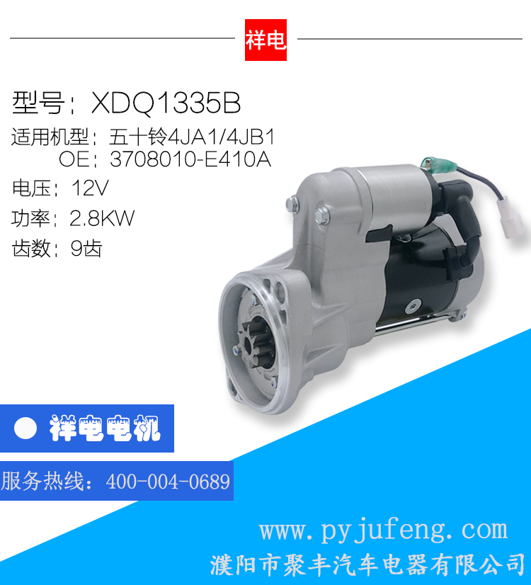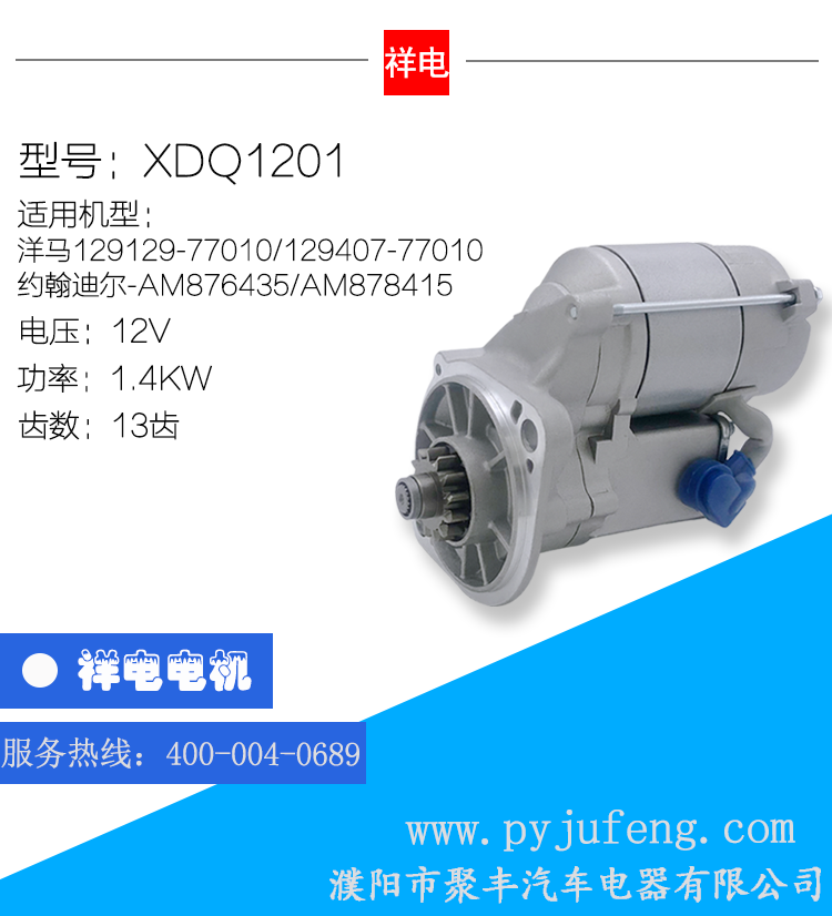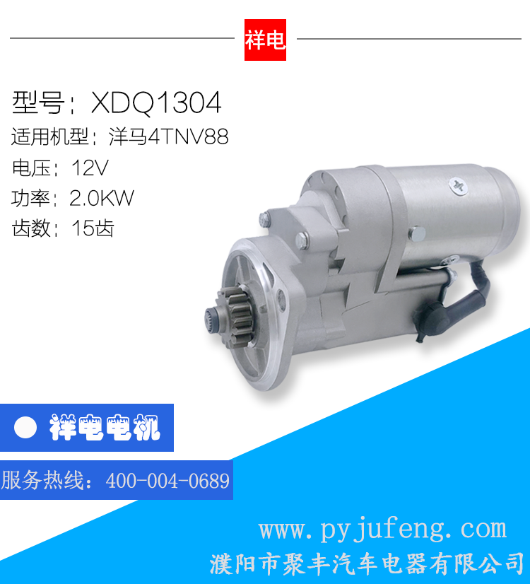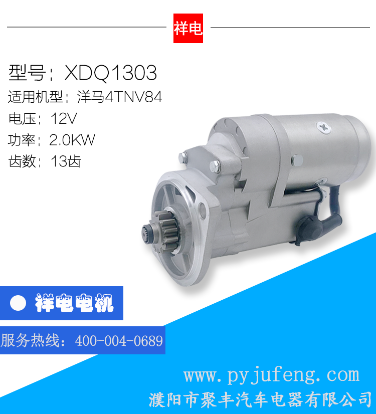 聚豐電器是一家專(zhuān)業(yè)從事起動(dòng)機(jī)、充電機(jī)及其零部件的設(shè)計(jì)制造的高新技術(shù)企業(yè)。擁有“祥電”(濮陽(yáng)市聚豐汽車(chē)電器有限公司)、“億資”(山東億資汽車(chē)電器有限公司)、“重汽原廠(chǎng)”(濟(jì)南大品汽車(chē)零部件制造有限公司)三個(gè)商標(biāo)。公司自創(chuàng)建以來(lái),已設(shè)計(jì)、制造出行星、偏心減速起動(dòng)機(jī)八個(gè)系列,一百四十多個(gè)品種。年生產(chǎn)能力40萬(wàn)臺(tái),產(chǎn)品覆蓋濰柴、重汽、杭發(fā)、康明斯、玉柴、洛拖、錫柴、大柴、云內(nèi)、朝柴等發(fā)動(dòng)機(jī)及各種工程機(jī)械。…